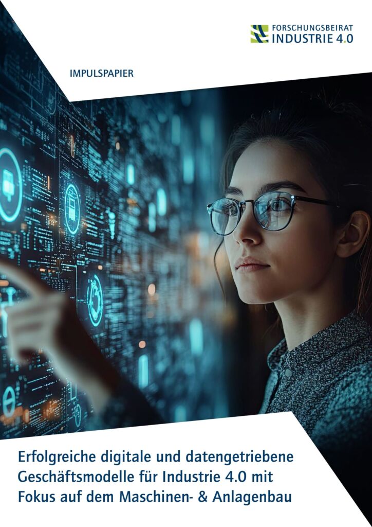 Der Forschungsbeirat Industrie 4.0 stellt mit dem Impulspapier ‚Erfolgreiche digitale und datengetriebene Geschäftsmodelle für Industrie 4.0 mit Fokus auf dem Maschinen- & Anlagenbau‘ anhand von fünf Fallbeispielen aus der Industrie konkrete Erfolge bei der Monetarisierung und Skalierung vor. Auf dieser Basis werden Erfolgskriterien für die Wertschöpfung erarbeitet, um digitale Geschäftsmodelle wie beispielsweise Remote-Operation-Support, Predictive Maintenance oder KI-gestützte Datenanalyse marktfähig zu machen. Ziel ist es, mehr datengetriebene Geschäftsmodelle im Kontext der Industrie 4.0 am Markt zu etablieren, um die Wettbewerbsfähigkeit und die Souveränität des Wirtschaftsstandorts Deutschlands zu stärken Das Impulspapier richtet sich vor allem an Unternehmen des Maschinen- und Anlagenbaus, die ihre Geschäftsmodelle erneuern wollen.