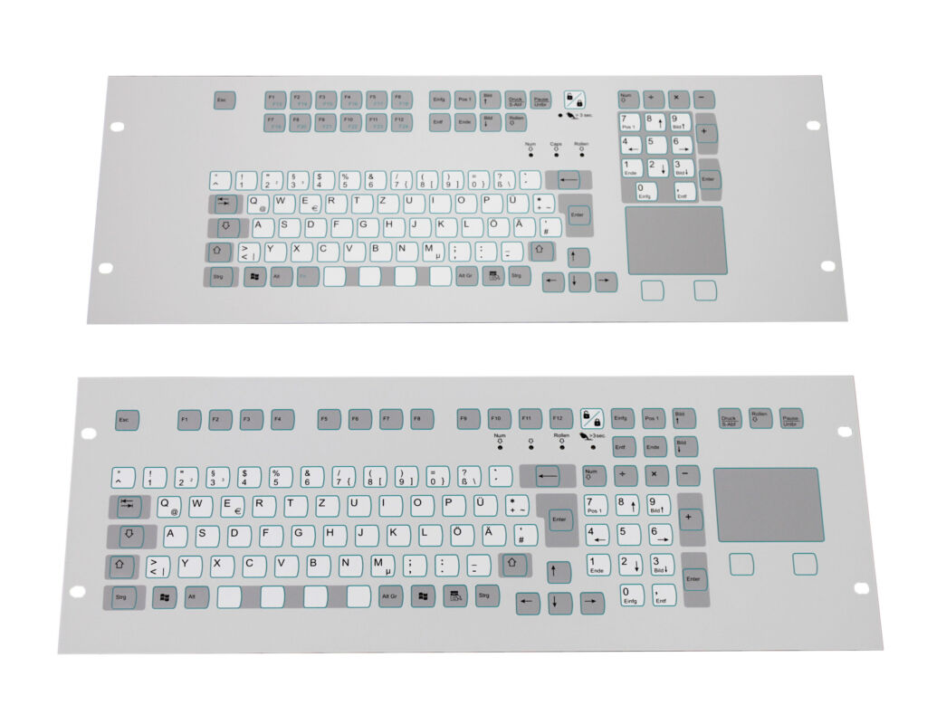 Wöhr hat die Einbautastaturen der Serie Inta für den Einsatz in industriellen Umgebungen und 19″-Schränken konzipiert. Neu sind jetzt die hochwertigen, 483x178mm großen Kurzhub-Tastaturen in den Versionen 14 und 15. Die frontseitigen Langlöcher ermöglichen eine einfache Montage und Integration in bestehende Geräte und Systeme. Durch ihre Prägung erlauben die Tasten eine komfortable Bedienung, ergänzt durch ein kapazitives Touch-Pad/Glide-Pad. Das robuste Design, kombiniert mit der IP-Schutzklasse IP65 im folienabgedeckten Bereich, verhindert das frontseitige Eindringen von Staub und Spritzwasser. Durch die antibakterielle Frontfolie und erleichterte Reinigung der Tastatur während des Betriebs kann eine Bedienung in hygienisch anspruchsvollen als auch typischen industriellen Umgebungen gewährleistet werden. Die Frontfolie kann Kundenindividuell gestaltet werden.