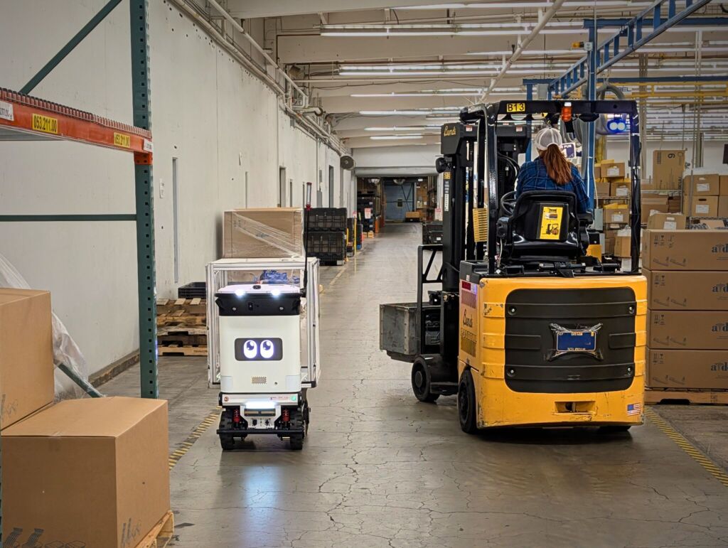 Die Skalierbarkeit von Indoor-Outdoor-AMRs zeigt sich nicht nur in der Anzahl der Roboter, sondern auch in der Erweiterung ihres Einsatzspektrums – z.B. hin zu schwereren Lasten. Damit erweitert sich das Einsatzspektrum zusätzlich. Der autonome Palettenhubwagen Mover von Cartken ist für Lasten bis 1.500kg ausgelegt und kombiniert eine Hubhöhe von 150cm mit verstellbaren Gabeln für unterschiedliche Palettenstandards sowie einer Laufzeit von mehr als zehn Stunden inklusive autonomem Laden. Damit lassen sich erstmals auch palettierte Materialflüsse zwischen Lager, Produktion und Außenbereichen automatisieren – ein Aufgabenfeld, das bislang klassischen manuellen Flurförderzeugen vorbehalten war.