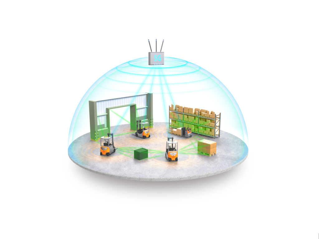 Dabei zeigte sich erneut, dass 5G in der Intralogistik eine leistungsfähige Alternative zum WLAN ist, das insbesondere durch die geringen systembedingten Sendeleistungen und die offenen Frequenzbänder anfällig für Störungen sein kann. „Vor allem garantierte Bandbreiten und die Verlässlichkeit von 5G machen den Unterschied“, erklärt Bergmann. „Das private 5G nutzt ein speziell für den Anwender lizensiertes Frequenzspektrum, das nicht öffentlich zugänglich ist. Durch die Nutzung von Network Slicing oder TSN-Ansätzen wird für relevante Infrastrukturen eine Bandbreite garantiert und eine stabile Vernetzung zahlreicher Geräte ermöglicht – von autonomen Transportfahrzeugen über Handscanner bis hin zu KI-gestützten Kamerasystemen.“
