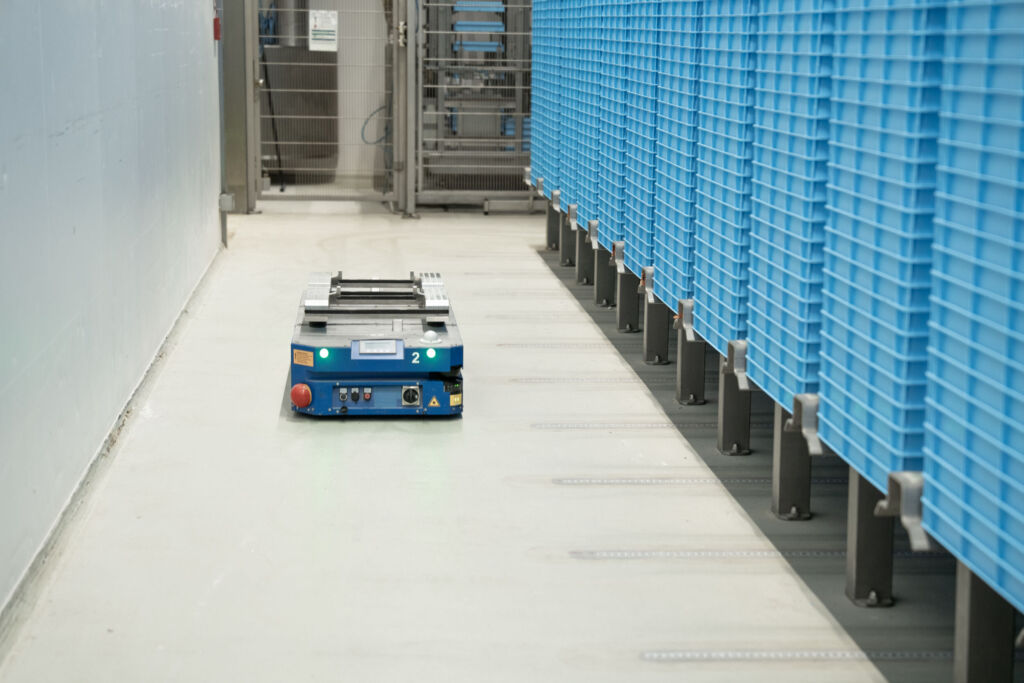 Die Lösung ermöglicht den Transport und die Einlagerung von bis zu 1.000 Kisten pro Stunde mit hoher Präzision. Mithilfe der automatischen Platzermittlung durch die Leitsteuerung wird der Lagerraum bestmöglich genutzt. Durch den Einsatz der FTS-Lösung konnten manuelle Arbeitsschritte automatisiert werden, was die Mitarbeiter erheblich entlastet und Fehler reduziert.