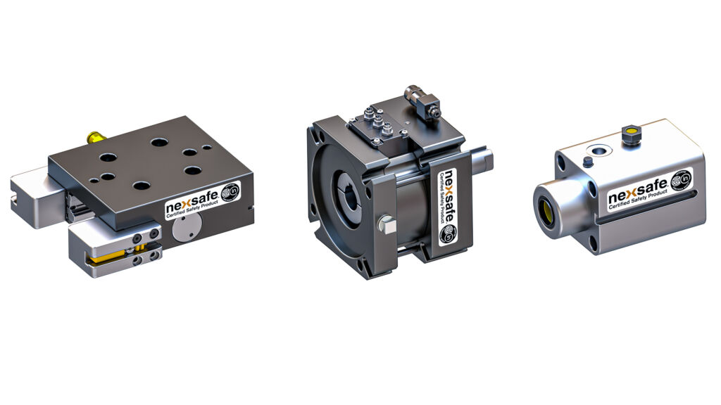 Nexen bietet ein umfangreiches Sortiment an Wellenbremsen, Servomotorbremsen und Schienenbremsen der Reihe NexSafe, die nach ISO13849-1 sicherheitszertifiziert sind. Mit der Zertifizierung für funktionale Sicherheit von Intertek können NexSafe-Produkte an Maschinen zum Halten, für Not-Aus oder zum Positionieren verwendet werden. Die feder- und pneumatisch ausgelösten Bremsen sind für Anwendungen konzipiert, die einen spielarmen bzw. spielfreien Betrieb erfordern. Optionale Betriebsartsensoren sorgen außerdem dafür, dass NexSafe-Produkte als Sicherheitsvorrichtung dienen können, die für die Kategorien B bis 4 der ISO13849-1 und die Leistungsstufen PLa bis PLe ausgelegt sind.