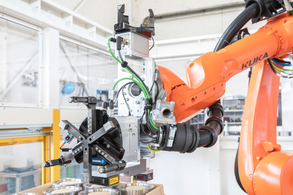 Das Wekal-Konstruktionsteam hatte zur Lösung dieser speziellen Aufgabe auch ein Wettbewerbsprodukt getestet- aber mit diesem hat der Greifer, obwohl mehrere individuelle Lösungen versucht wurden, während des Prozesses das Bauteil verloren. „So hat sich wieder einmal bewiesen, dass Schunk beim Thema Greiftechnik der richtige Ansprechpartner für uns ist“, so Liebal. Sein Team kannte bereits den elektrischen Zweifingergreifer EGU, der an anderer Stelle in der Linie verbaut ist. „Der hat uns gut gefallen“, bestätigt Liebal. So haben die Konstrukteure bei Schunk den Bedarf eines entsprechenden Dreifingermoduls für diese spezielle Handhabungslösung angemeldet. „Schunk hat alles dafür getan, uns in kürzester Zeit einen elektrischen Dreifingergreifer zur Verfügung zu stellen“, sagt Liebal. „und zwar genau so, wie wir ihn brauchten – kompakt gebaut und mit hoher Leistungsdichte, das waren exakt unsere Anforderungen bei diesem Prozess.“