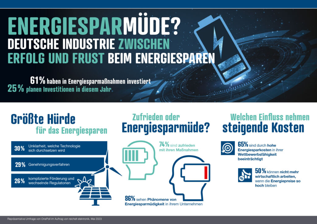 Reichelt Elektronik hat 500 Industrieunternehmen befragt, wie es dort um das Thema Energiesparen steht, wo die größten Sorgen für die Zukunft liegen und wie hoch die Motivation für weitere Investitionen ist. 61 Prozent der Befragten geben an, im letzten Jahr in diesem Bereich investiert zu haben. Weitere 25 Prozent planen Investitionen in diesem Jahr. Bereits durchgeführt sind schnelle und weniger komplexe Maßnahmen wie der Austausch herkömmlicher durch LED-Lampen (51 Prozent), Sensibilisierung der Belegschaft (43 Prozent) oder das Herunterregulieren der Raumtemperatur (42 Prozent).