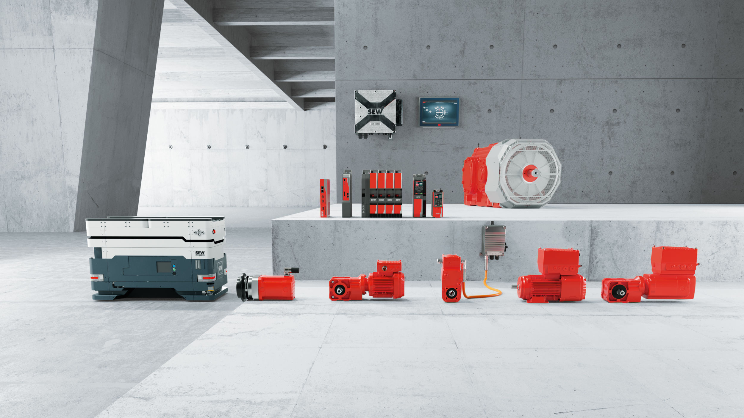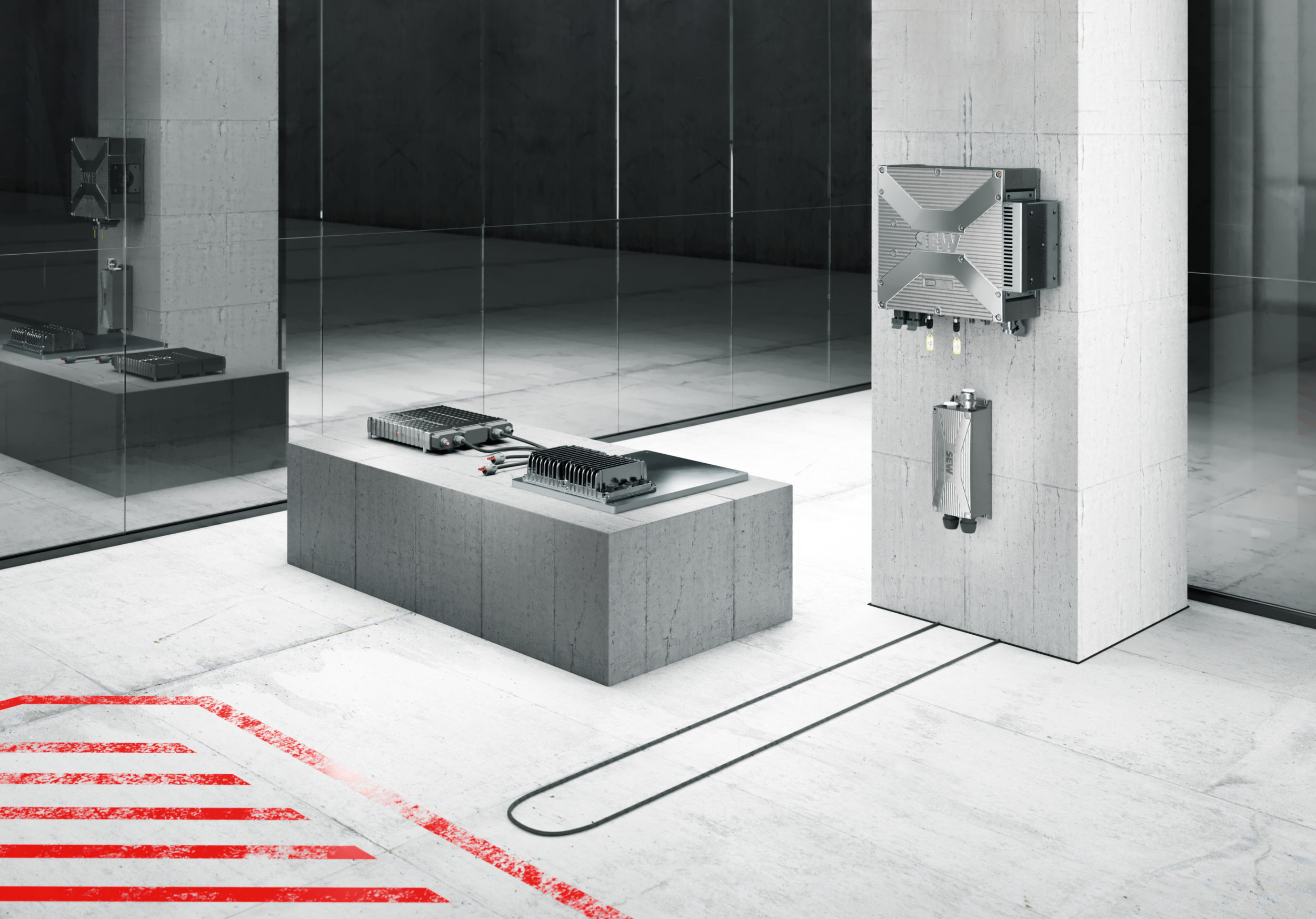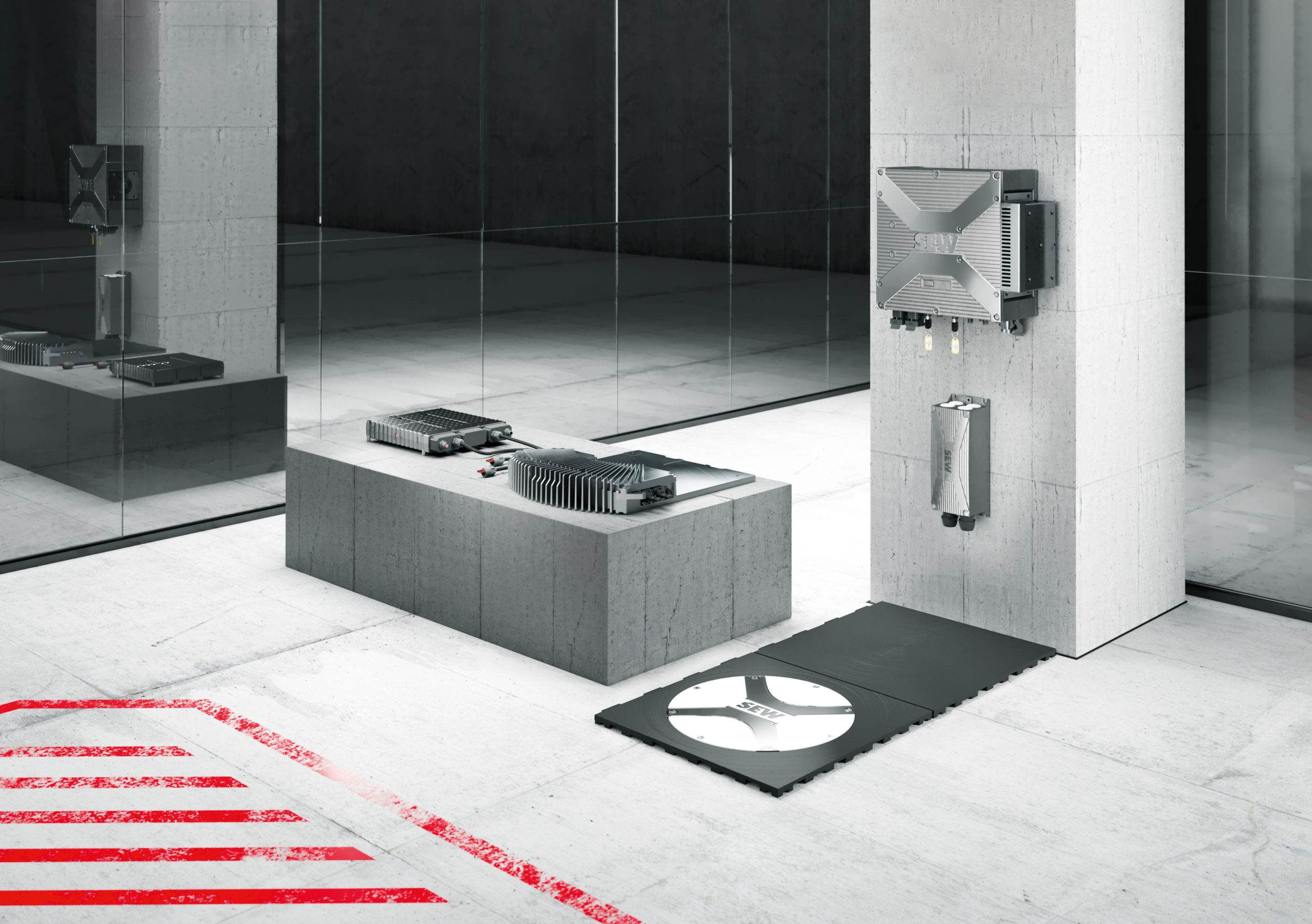 Wir haben auf der einen Seite mit Movitrans und auf der anderen Seite mit unseren Power and Energy Solutions – kurz PES – aus unserem Baukasten Movi-C zwei Infrastrukturkomponenten, die ideal geeignet sind, Energie modern zu managen. Während Movitrans für die kontaktlose Energieübertragung zuständig ist, also berührungsfrei über einen Luftspalt die Energie vom Linienleiter oder einer Feldplatte aus dem Netz in das AGV überträgt, sorgt das PES für die Energieversorgung und Energiemanagement der in den Energiespeichern aufgenommenen Energie. Diese beiden Infrastrukturkomponenten haben wir heute allerdings noch nicht gekoppelt. Aber wir wollen sie zukünftig koppeln. Wir richten uns hier wirklich konsequent auf die Zukunft aus und wollen die Fabriken nicht nur gemäß der Industrie 4.0 über die Kommunikation automatisieren, sondern auch energetisch vernetzen